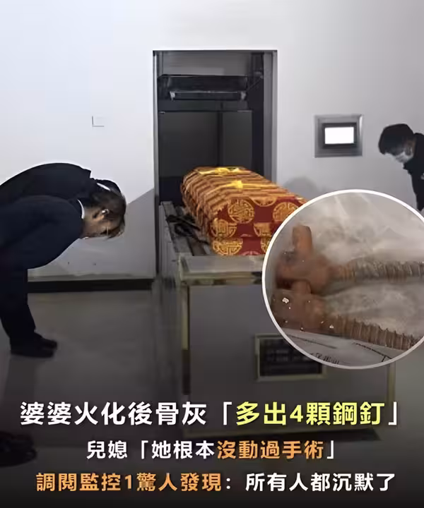 婆婆火化後骨灰「多出四顆鋼釘」 兒媳「她根本沒動過手術」...調閱監控一驚人發現:所有人都沉默了