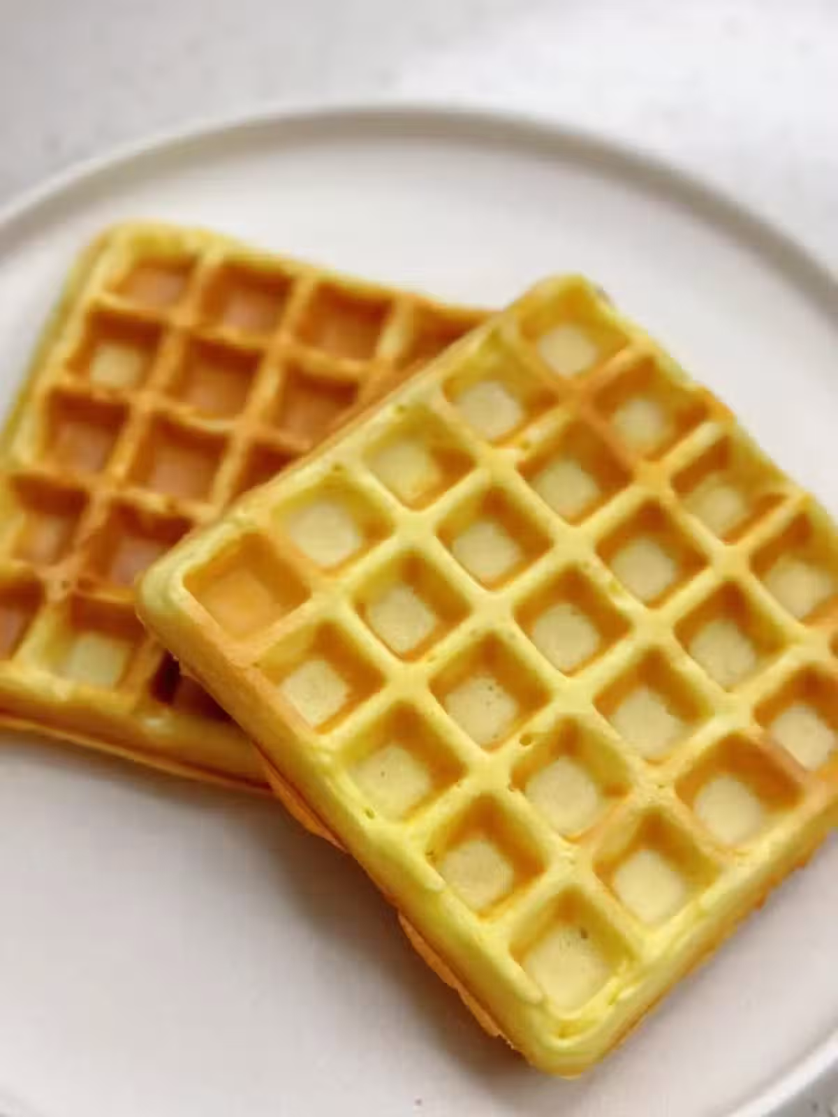 5️⃣ 早餐機預熱2分鐘(可以刷點油) 倒入麵糊(基本鋪平就行 不然容易溢出來),加熱6分鐘左右即可