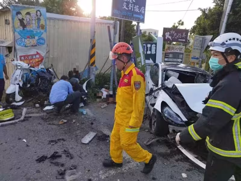 恆春特斯拉追撞水泥車再撞飛「4貼」機車 釀1亡7傷
