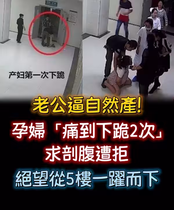 老公逼自然生產, 孕婦「痛到下跪2次」求剖腹遭拒, 絕望從5樓一躍而下!