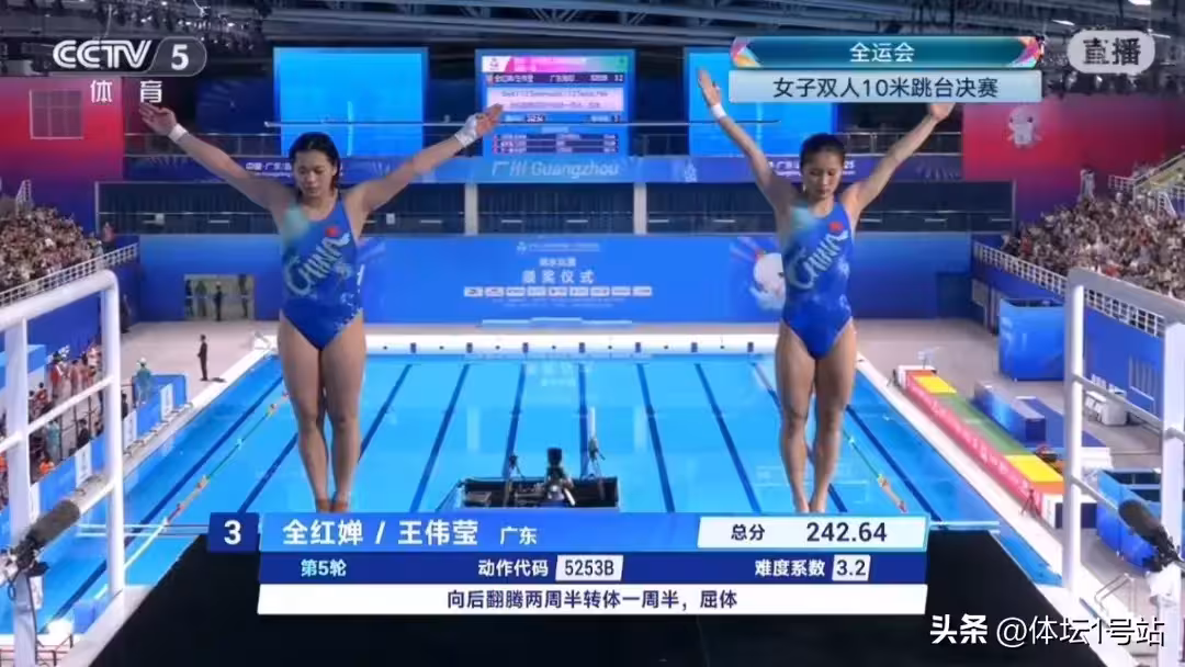 特別值得注意的是,在第四跳完成後,全紅嬋與王偉瑩的組合仍然排名第三,看似有機會奪得銅牌,但遺憾的是,王偉瑩在最後一跳的5253B動作中出現了嚴重失誤,導致巨大的水花,讓銅牌最終變成了第5名。令人感動的是,全紅嬋在賽後並沒有責怪隊友,而是及時安慰了她,輕聲說了一句「沒關係」,保護了王偉瑩的情緒。