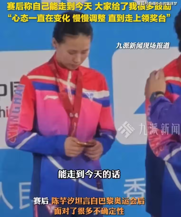 在拿到全運會首個單人10米台冠軍後,陳芋汐不停撫摸著獎牌,她在賽後接受廣東媒體的採訪,她表示:巴黎奧運會後面對了很多不確定性,大家給了我很多鼓勵,我的心態也一直在變化,慢慢調整,最終走上了領獎台。