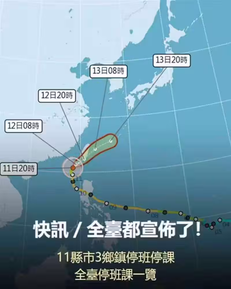 快訊/全台都宣布了!11縣市3鄉鎮停班停課...全台停班課一覽!