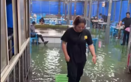 釣蝦場淹水!釣客「繼續聊」畫面違和 網笑:沉浸式體驗