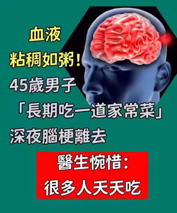 血液粘稠如粥!!45歲男子「長期吃一道家常菜」 深夜腦梗離去「醫生惋惜」:很多人天天吃!