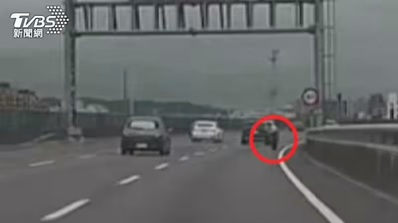 目擊民眾描述,當時在快速道路前方突然出現一個黑點,仔細一看竟然是一顆輪胎,從最外側車道一路滾到最內側。內側車輛紛紛急煞閃避,再往前一點就是這顆迷路輪胎的主人。目擊民眾表示,曳引車後輪已全部爆掉,共有兩顆輪胎不見蹤影,一顆在車輛後方,另一顆則在前面還在冒煙。