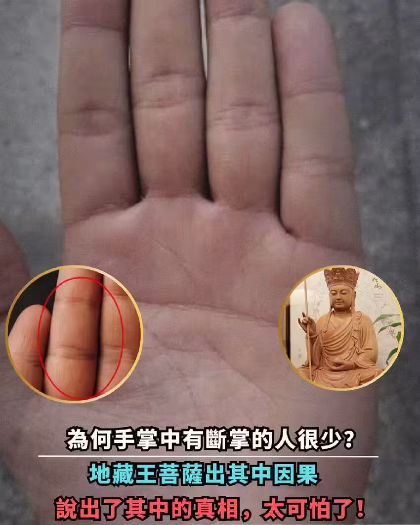 何手掌中有斷掌的人很少?地藏王菩薩出其中因果,說出了其中的真相,太可怕了!