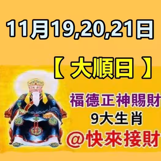 11月19,20,21大順日,福德正神賜財,9大生肖請接財