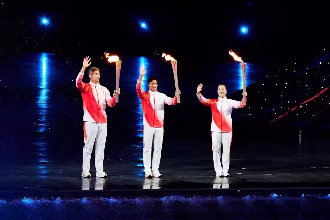 △蘇炳添擔任十五運會開幕式火炬手,點燃主火炬。