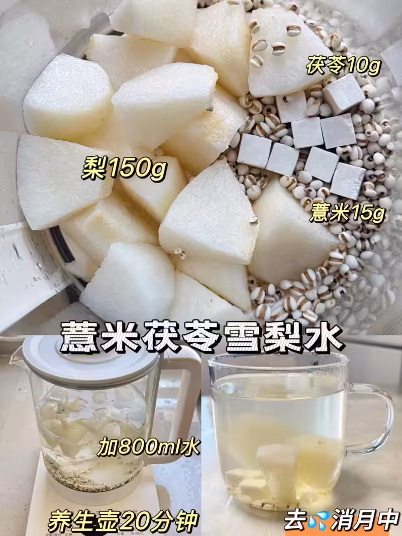 陳皮雪梨水:梨 150g+陳皮 8g+冰糖 10g+水 1000ml
