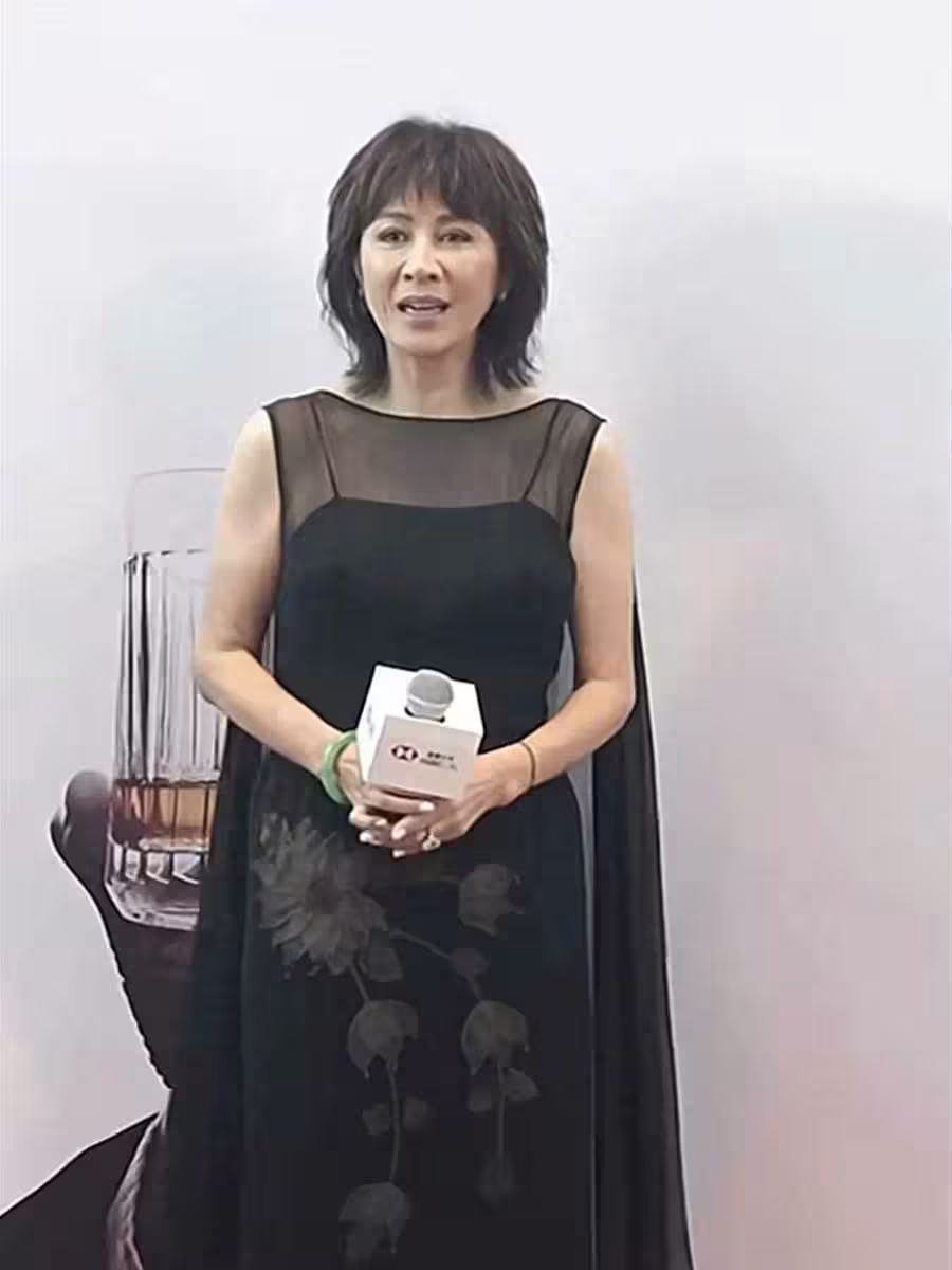 當她拿著話筒笑起來時,臉上的皺紋比酒窩更為明顯,特別是在臉頰兩側,幾道深深的皺紋顯得格外顯眼,仿佛在無聲地訴說著歲月的流逝。眼睛的神采也不復從前,眼神中透露出一種難掩的疲憊,仿佛失去了曾經那種閃耀的光芒。