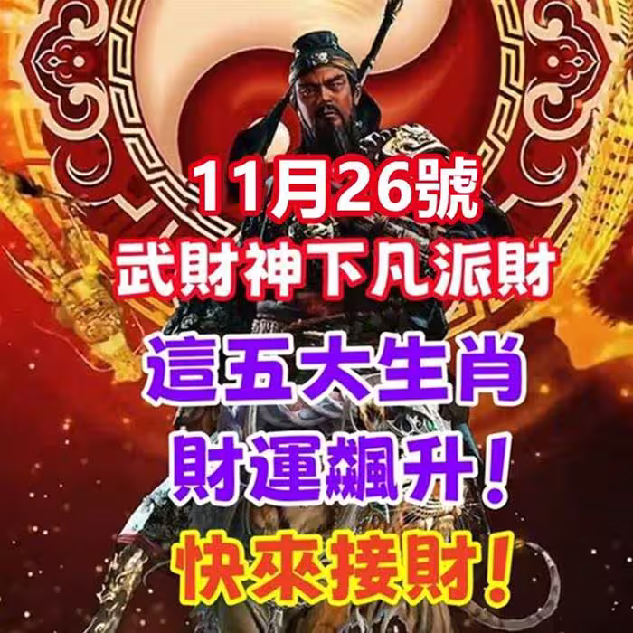11月26號,武財神下凡派財,這五大生肖財運飆升!快來接財