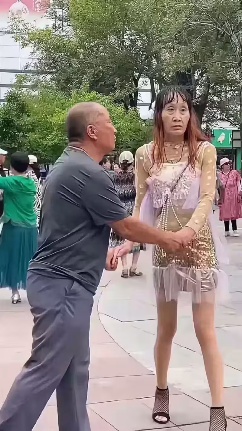 大爺和「靚女」廣場跳舞引注目!飄逸秀髪逆天長腿卻「毀在一個回眸上」,網驚:背影殺手,秒變正面「兇手」