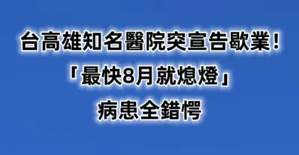 突發/台高雄知名醫院突宣告歇業!「最快8月就熄燈」病患全錯愕