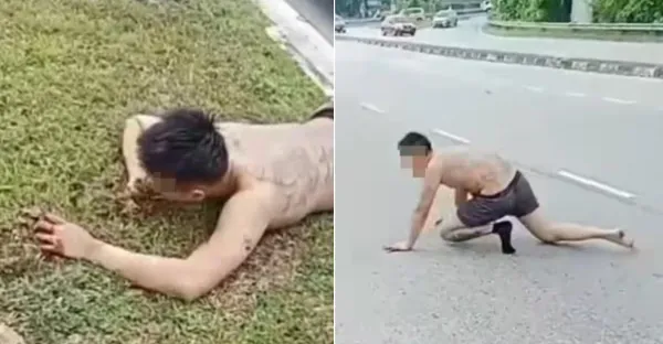 快訊/台男在大馬當街暴斃!半裸躺馬路「狂吃泥土」驚悚畫面全拍下