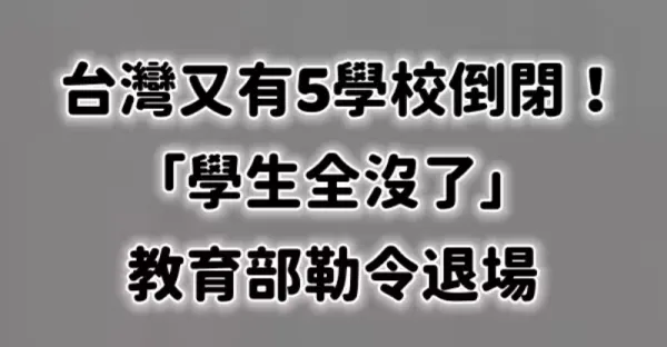 快訊/台灣又有5學校倒閉!「學生全沒了」教育部勒令退場