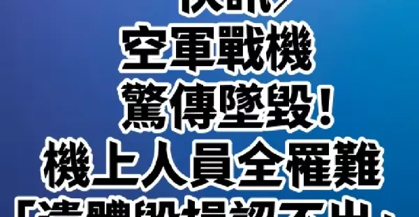 快訊/空軍戰機驚傳墜毀!機上人員全罹難 「遺體毀損認不出」