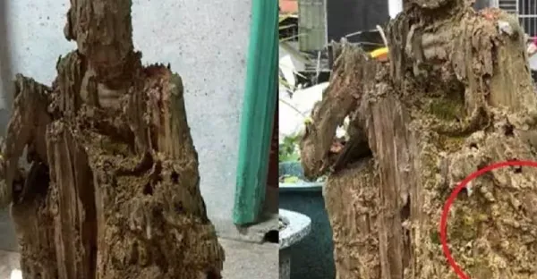 好神,遭白蟻咬10年枯木竟變濟公佛像,眼尖網友發現手上還有驚人細節,根本神跡