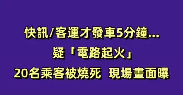 快訊/客運才發車5分鐘...疑「電路起火」20名乘客被燒死 現場畫面曝…