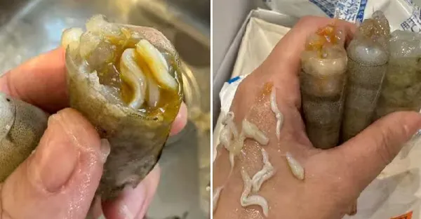 早上新買的蝦發現有「白蛆」,被嚇的不敢吃,她怒找店家理論卻被嘲:第一次吃海鮮嗎
