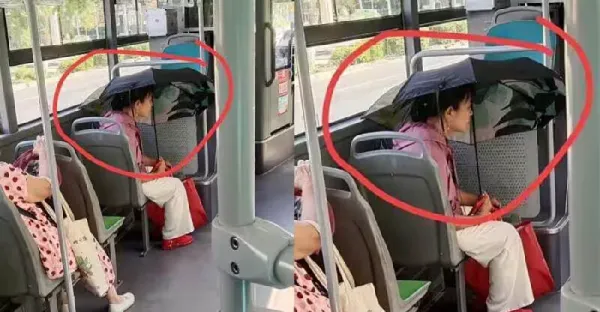 公車驚現「遮陽傘」大姐! PO網吐槽後,網友放大照片第3秒集體道歉
