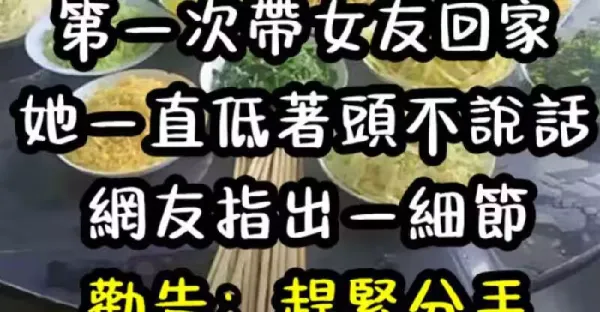 我第一次帶女友回家,她一直低著頭不說話,網友指出「一細節」勸告:趕緊分手