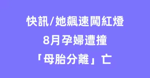 快訊//她飆速闖紅燈 8月孕婦遭撞「母胎分離」亡