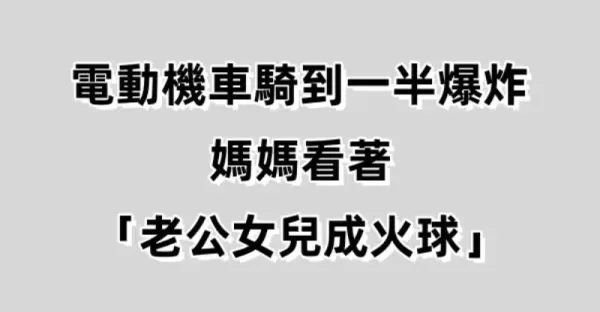 突發/電動機車騎到一半爆炸 媽媽看著「老公女兒成火球」