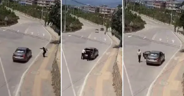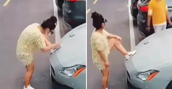 女子腳踩豪車引擎蓋「擦鞋」!車主走來不鬧不鬧,淡定「1步伐」分分鐘讓她長記性