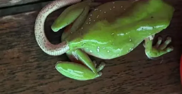 赫見樹蛙屁屁「多了條白尾巴」!她幫忙一拉「拉出一條長長的」眾人全看傻:怎麼搞的?