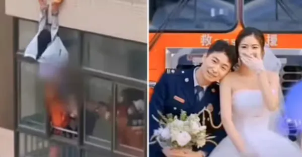 女子失戀想不開!消防員救援「不慎扯掉她褲子」3個月後兩人結婚「超甜婚紗照曝光」:非你不嫁