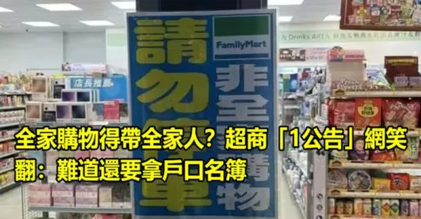 全家購物得帶全家人?超商「1公告」網笑翻:難道還要拿戶口名簿