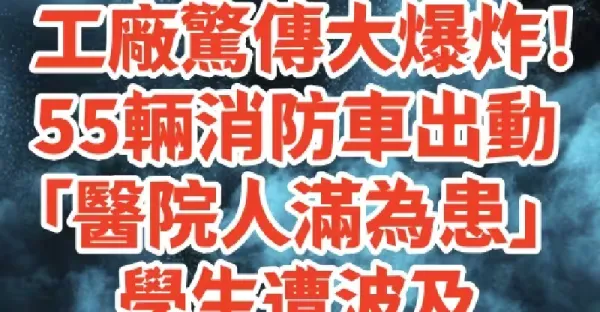 快訊/工廠驚傳大爆炸!55輛消防車出動「醫院人滿為患」學生遭波及「緊急停課...」