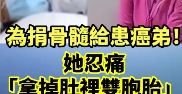 姐姐真偉大!為捐骨髓給患癌弟!她忍痛「拿掉肚裡雙胞胎」 最後結果「卻讓她懊悔終生」