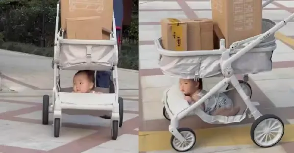 嬰兒車放著快遞箱,孩子卻被塞在車底!路人怒罵「冷血爸爸」,當他掏出「那張紙」時,所有人卻哽咽了!