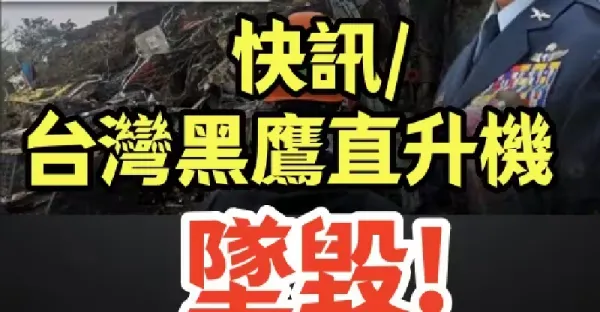 快訊/台灣黑鷹直升機墜毀,參謀總長沈一鳴等八人死亡.