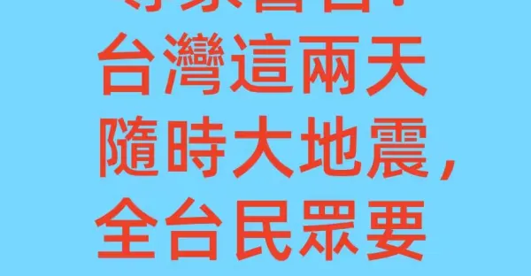 專家警告!「台灣這兩天隨時大地震,全台民眾要準備逃難」
