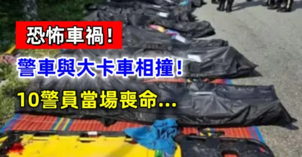 恐怖車禍!警車與大卡車相撞! 10警員當場喪命...