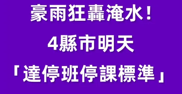 快訊/豪雨狂轟淹水!4縣市明天「達停班停課標準」 24小時估降400毫米