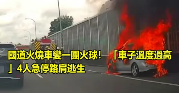 國道火燒車變一團火球! 「車子溫度過高」4人急停路肩逃生