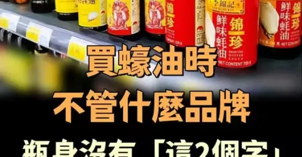 買蚝油時,不管什麼品牌,只要瓶身沒有「這2個字」,全是假蚝油!
