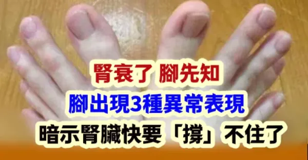 腎衰了,腳先知!腳出現3種異常表現,暗示腎臟快要「撐」不住了.