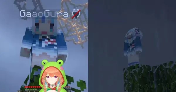 04,還真是高高在上呢!kiara玩《Minecraft》新伺服器遇見野生Gura,截圖成憂鬱感十足的桌布