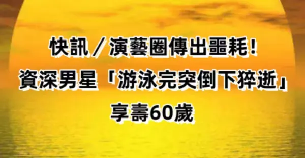 快訊/演藝圈傳出噩耗!資深男星「游泳完突倒下猝逝」享壽60歲...