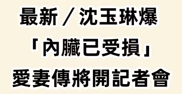 最新/沈玉琳爆「內臟已受損」! 愛妻傳將開記者會