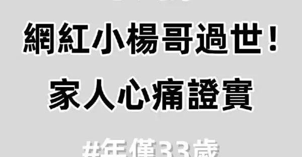 快訊/網紅小楊哥過世!家人心痛證實 #年僅33歲