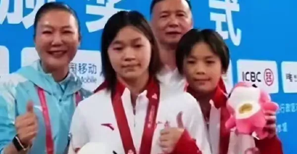18歲全紅嬋變身「紅姨」:場邊幫謝思埸帶娃 混進廣東男團冠軍照