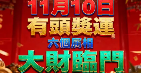 鴻運當頭的六大生肖:11月10日中頭獎 ,11日發橫財 ,12日偏財旺