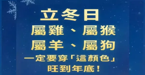 十一月七日【立冬日】屬雞、屬猴、屬羊、屬狗一定要穿「這顏色的衣服」旺到年底