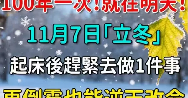 100年一次!就在明天!11月7日「立冬」起床後趕緊去做1件事,再倒霉也能逆天改命